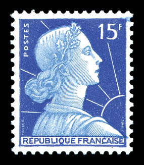 émis, Marianne de Muller, 15f outremer, bleu clair omis. SUPERBE. R.R. (certificat) Qualité: ** (Image)