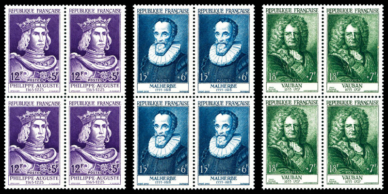 Série Célébrités du XIII au XXème siècle en bloc de quatre cdf, TB (certificat) Qualité: ** Cote: 720 euros (Image) (image2)
