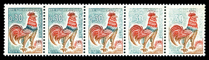 Coq: Couleur verte absente tenant à 2 ex couleur dégradée tenant à normaux en bande de 5. TTB (signé/certificat) Qualité: ** (Image)