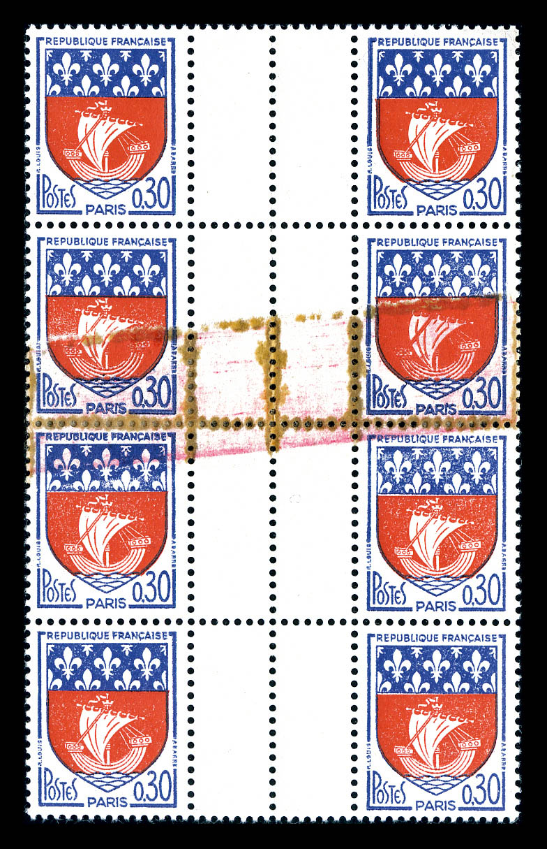 0.30c Blason de Paris: impression sur raccord en bloc de 8 ex. TTB (certificat) Qualité: ** (Image)