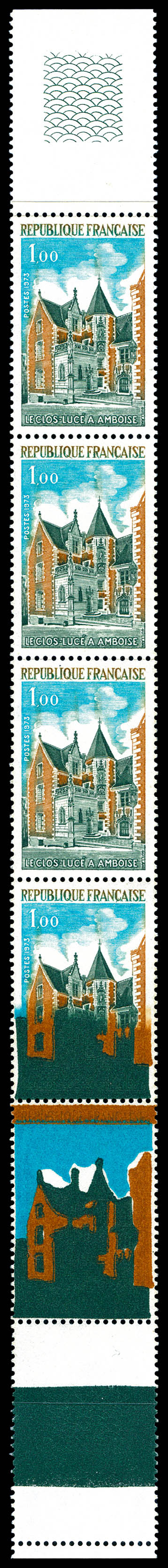 Amboise: Impression maculée sur 2 exemplaires tenant à normaux dans une bande de cinq bdf, superbe. R. (certificat) Qualité: ** (Image)