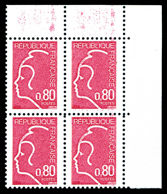 rouge, Marianne de DURRENS, Non émis en bloc de quatre coin de feuille . TTB. R. (certificat) Qualité: ** Cote: 9000 euros (Image)