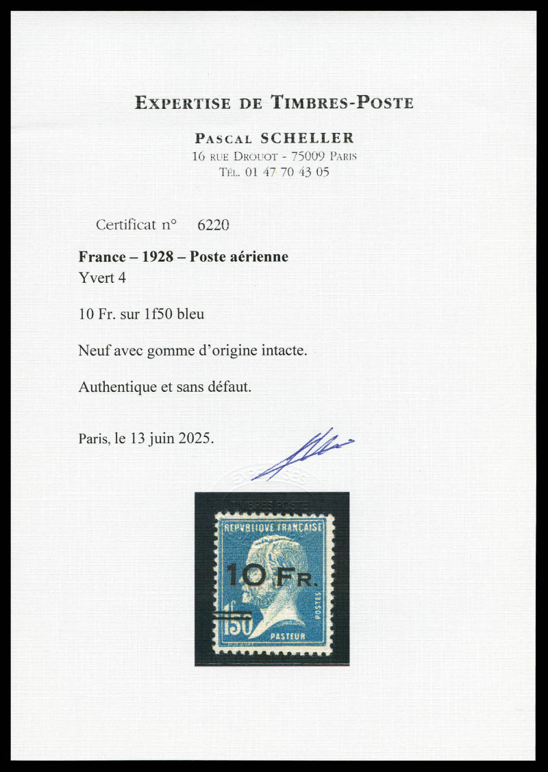 surchargé à bord du paquebot 'ILE DE FRANCE' 10F sur 1,50F bleu, exceptionnelle fraîcheur, SUPERBE, R.R.R (signé Champion/certificats) Qualité: ** Cote: 17500 euros