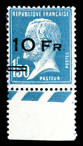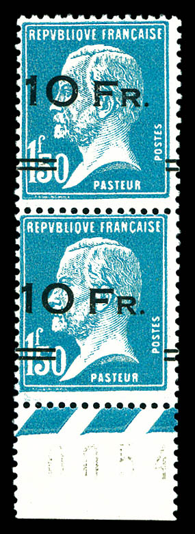 10F sur 1F50 bleu, surcharge espacée* tenant à normale, bas de feuille numéroté, FRAÎCHEUR POSTALE, R.R.R ET SUPERBE (certificat) Qualité: ** (Image)