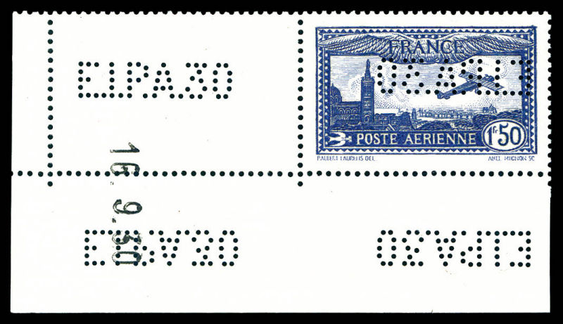 outremer perforé 'E.I.P.A.30', coin de feuille daté, TTB (certificat) Qualité: ** Cote: 875 euros (Image)