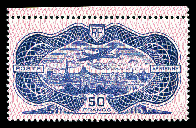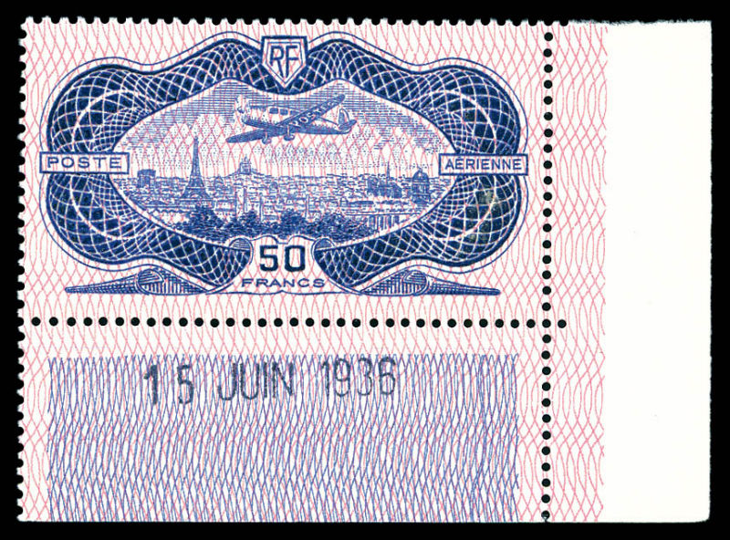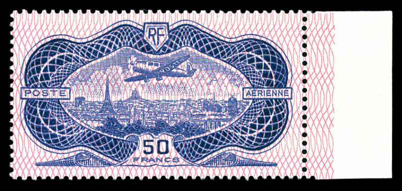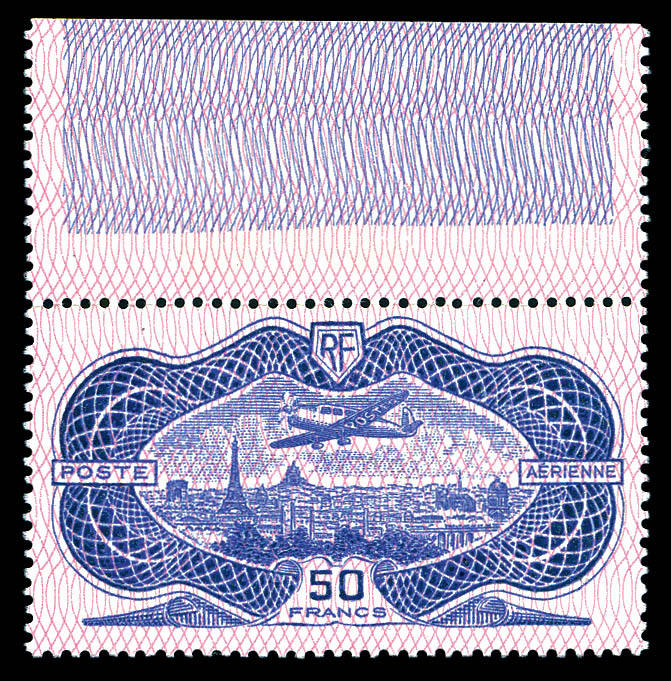 Burelé non dentelé et sans le burelage rose, bord de feuille latéral, GRANDE RARETE DE LA POSTE AERIENNE FRANCAISE (certificats) Qualité: ** (Image) (image2)