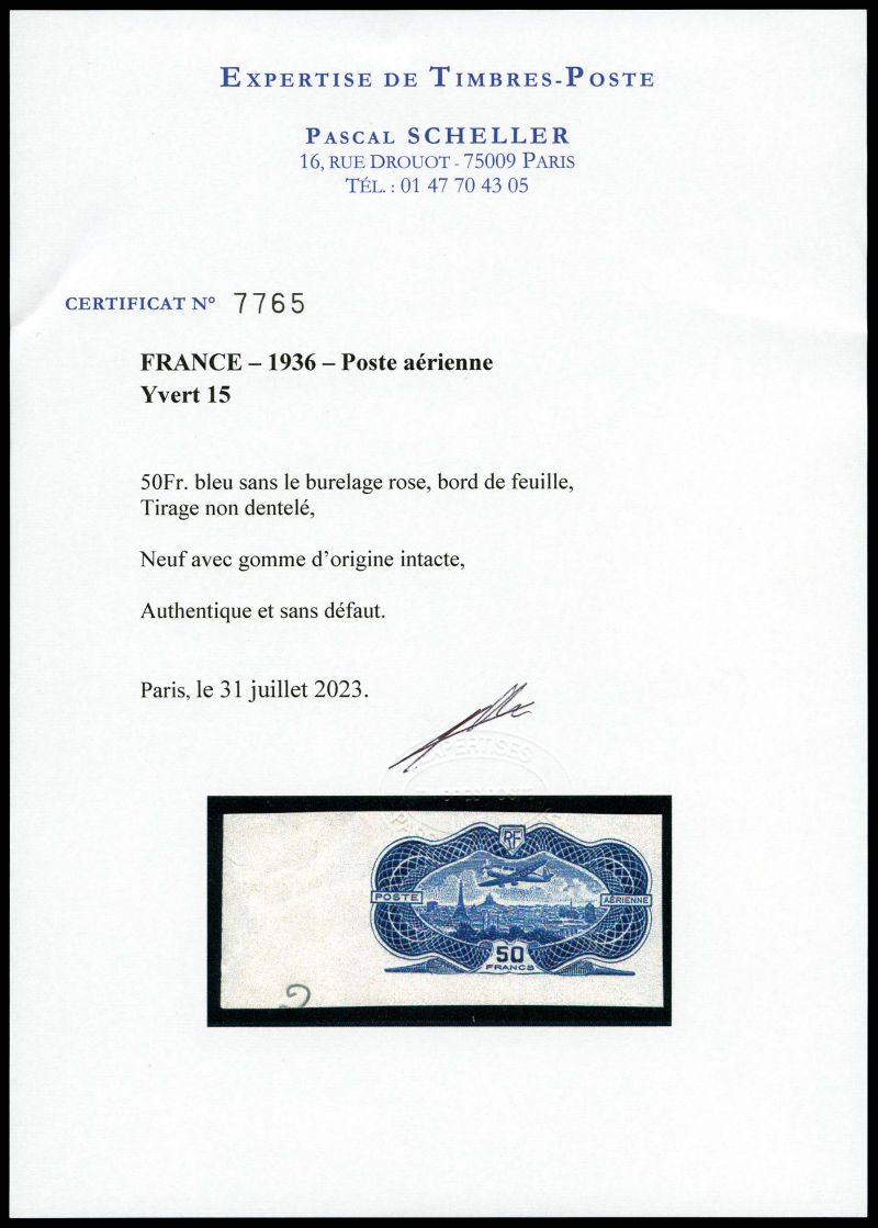 outremer, coin de feuille daté du 15 juin 1936. SUP (certificat) Qualité: ** Cote: 1500 euros (Image)