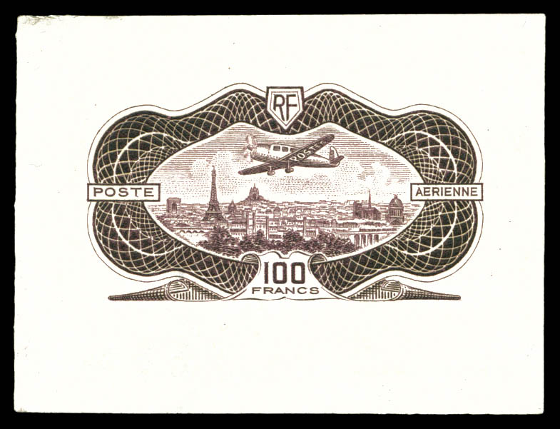 EMIS, 100F Burelé: épreuve en lilas-foncé, sans burelage. SUPERBE. R.R.R. (certificat) Qualité: (*) Cote: 12000 euros (Image)