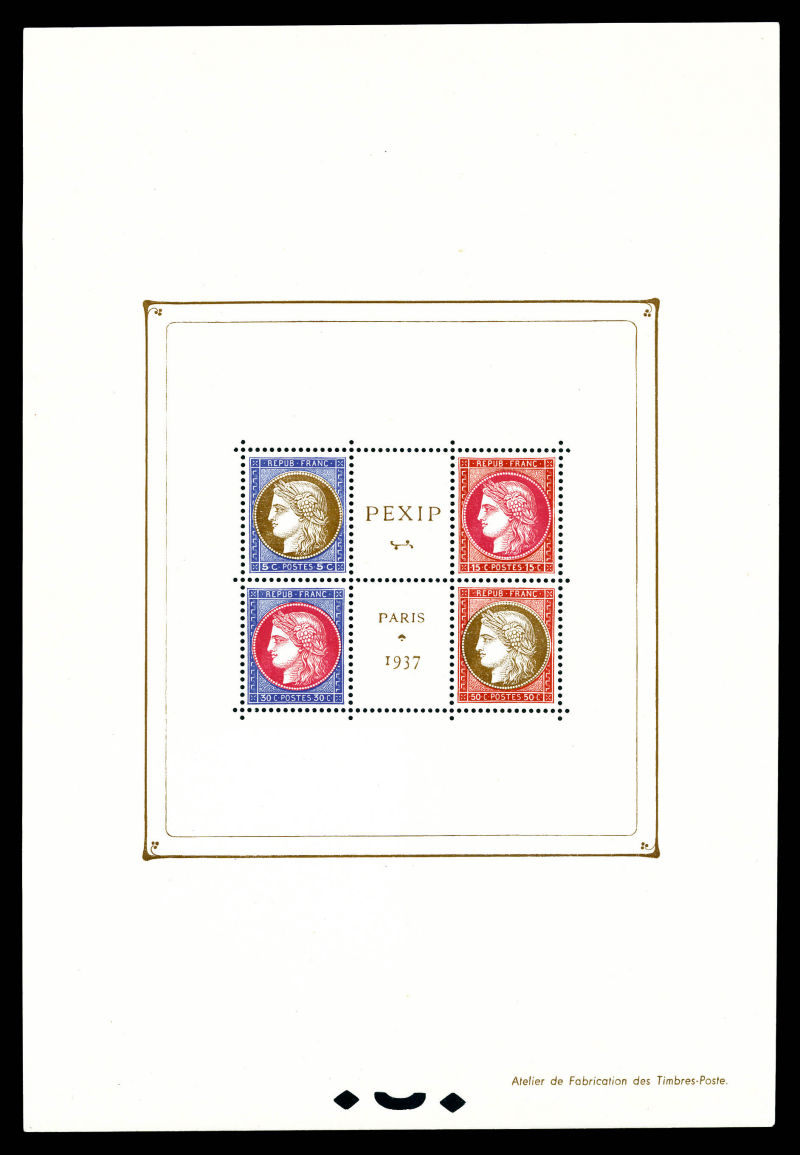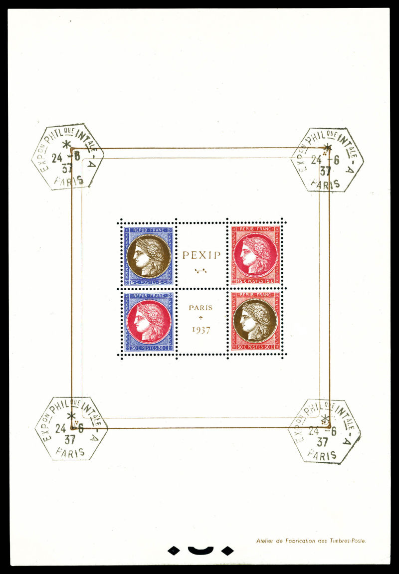 Exposition Philatélique de 1937 PEXIP (centre**) avec cachet de l'expo hors timbres, TB (certificat) Qualité: * Cote: 450 euros (Image)