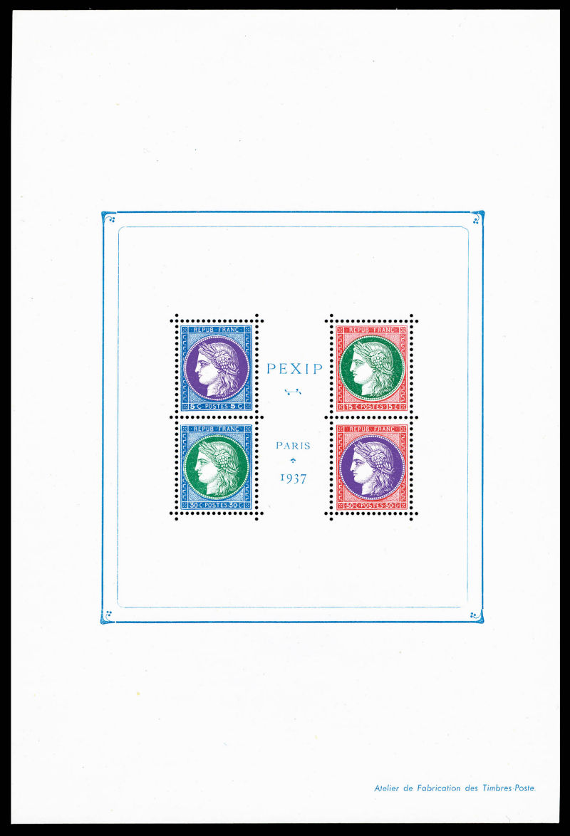 EMIS: Exposition philatélique de 1937 PEXIP format 140mm x 130mm avec couleurs différentes, GRANDE RARETE, SUPERBE (certificat) Qualité: ** (Image)