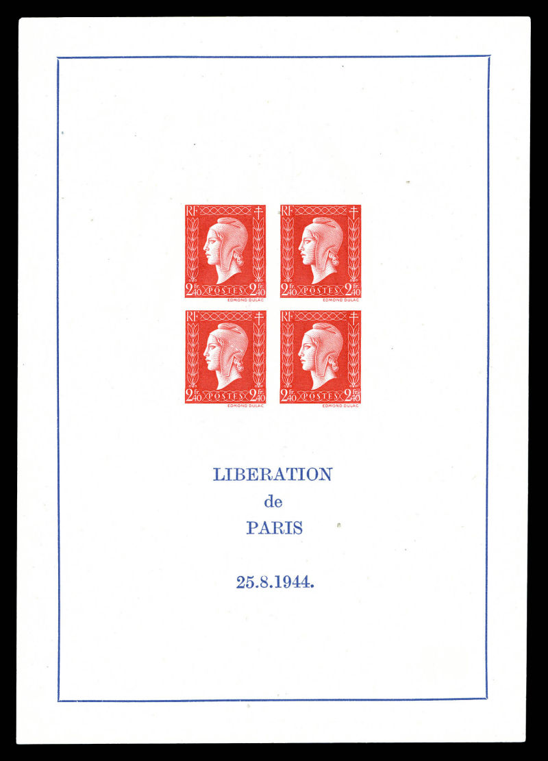 émis: Dulac, 2F 40 rouge en bloc de quatre sur feuillet non dentelé, SUPERBE. R.R. (certificat) Qualité: ** Cote: 9300 euros (Image)