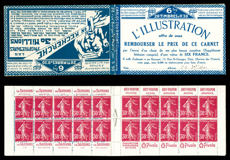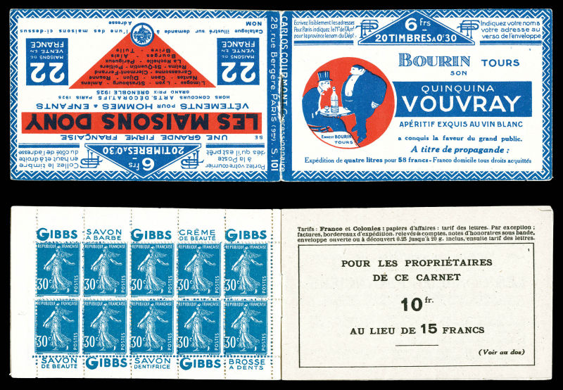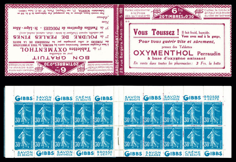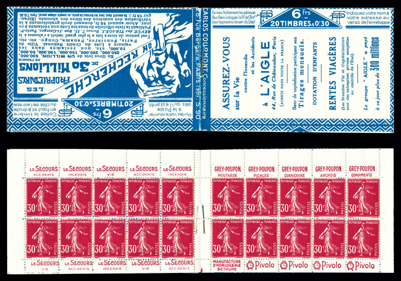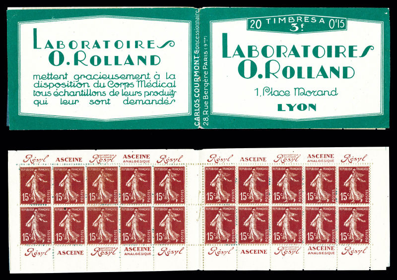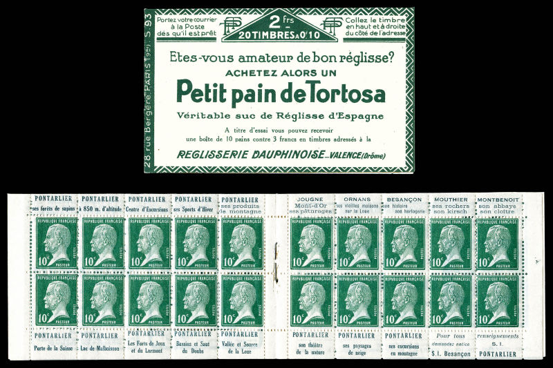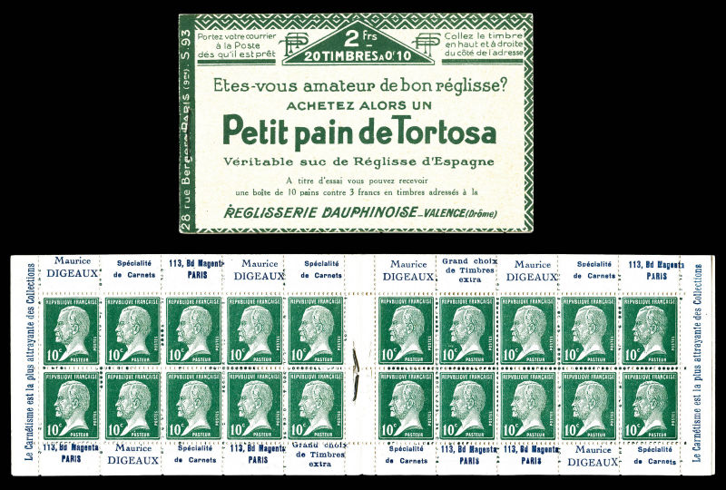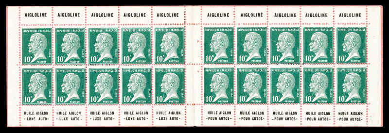 Pasteur, 10c vert, pub AIGLON sur 20 timbres, couverture AIGLON, RARE et SUPERBE (certificat) Qualité: ** (Image)
