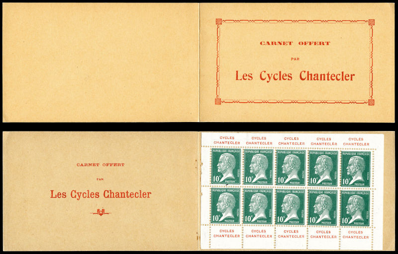 Pasteur, 10c vert, pub CYCLES CHANTECLER sur 10 timbres, couverture Chantecler, RARE et SUP (certificat) Qualité: ** (Image) (image2)