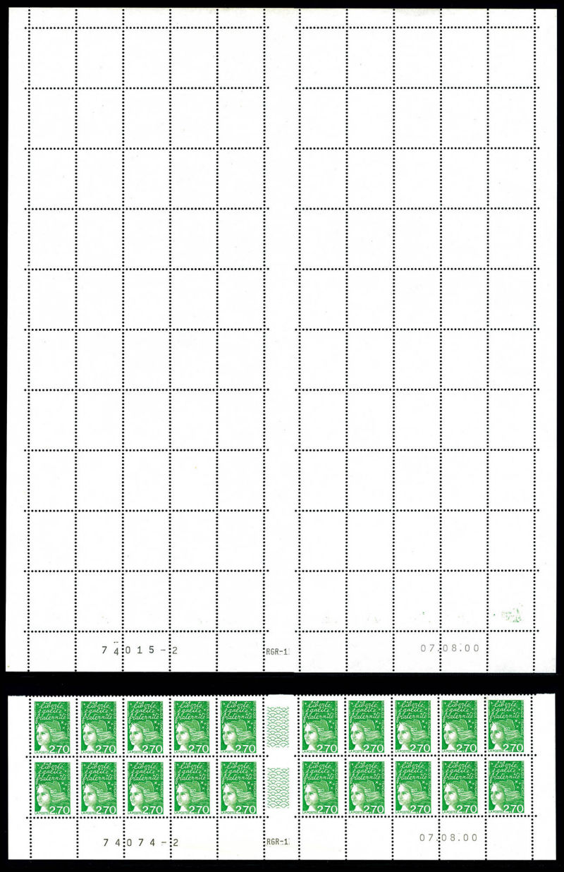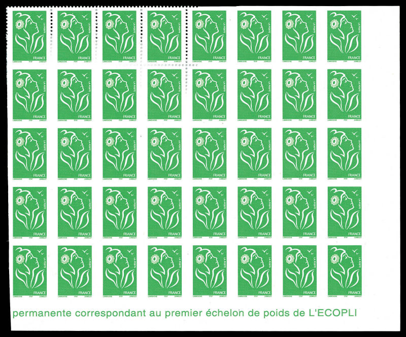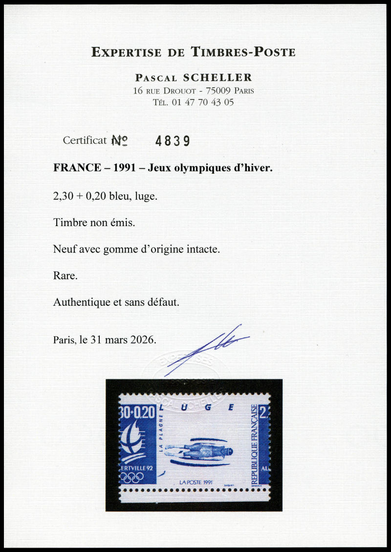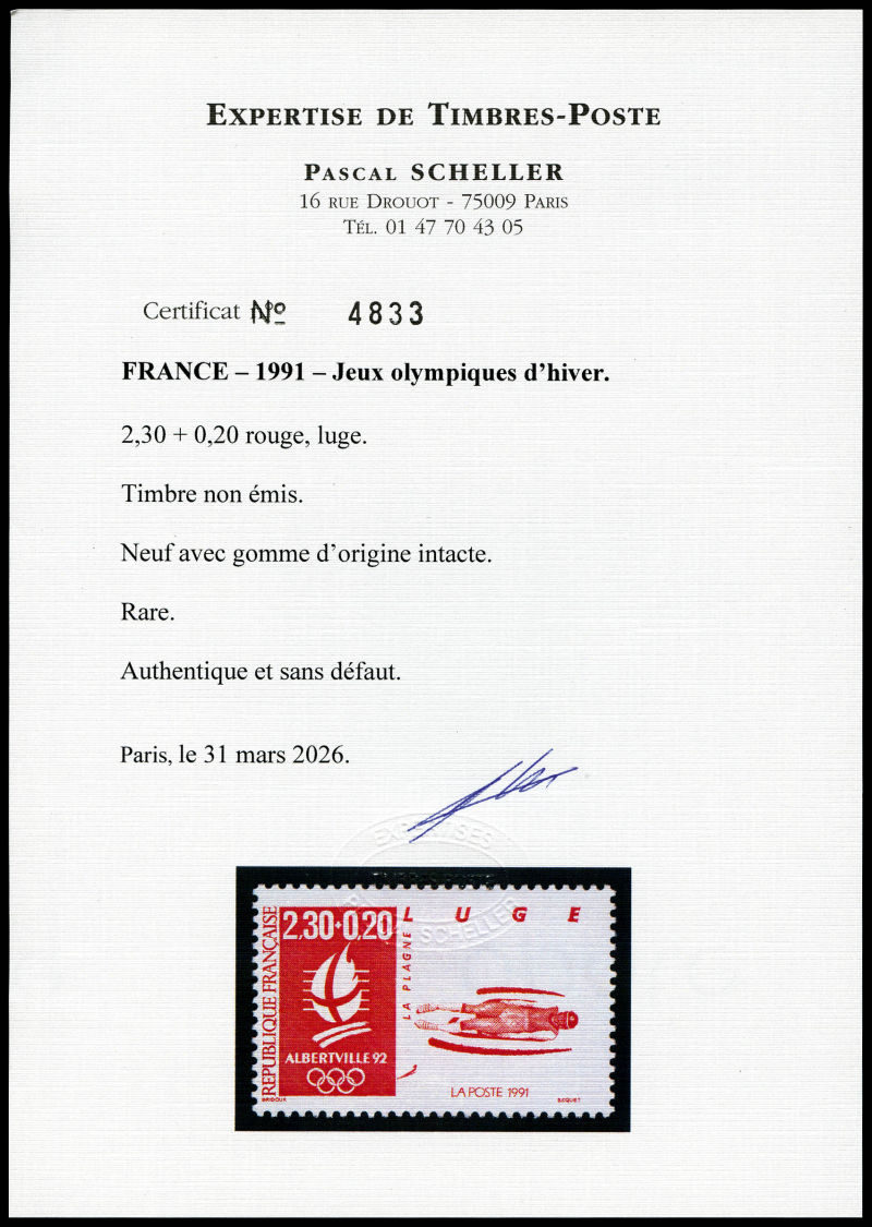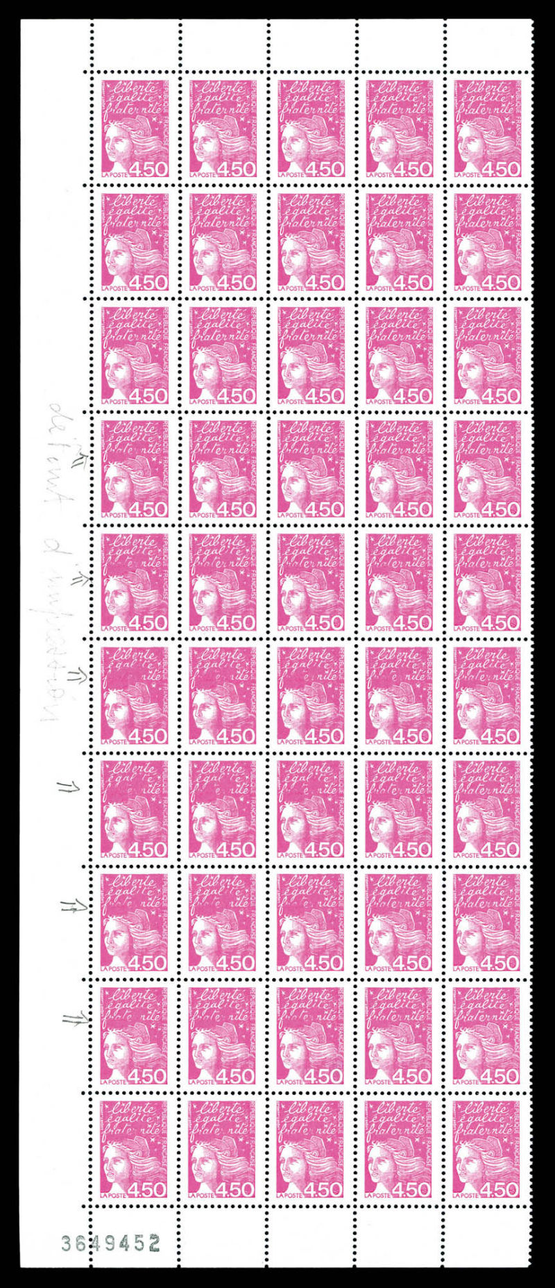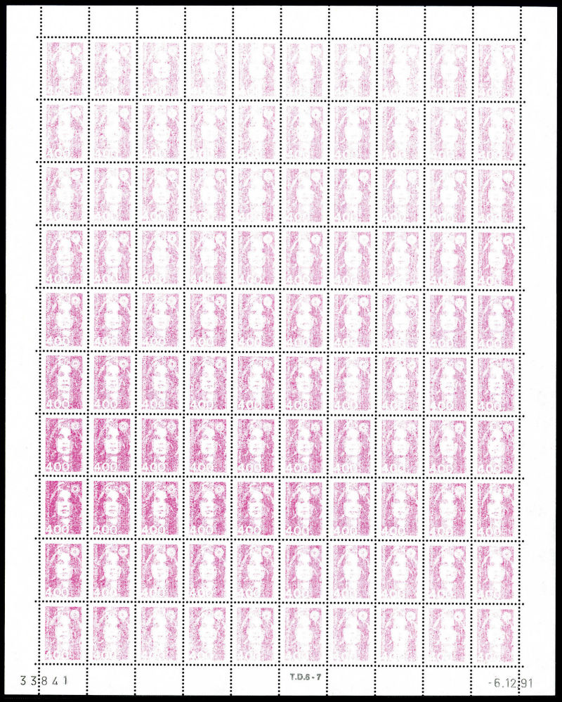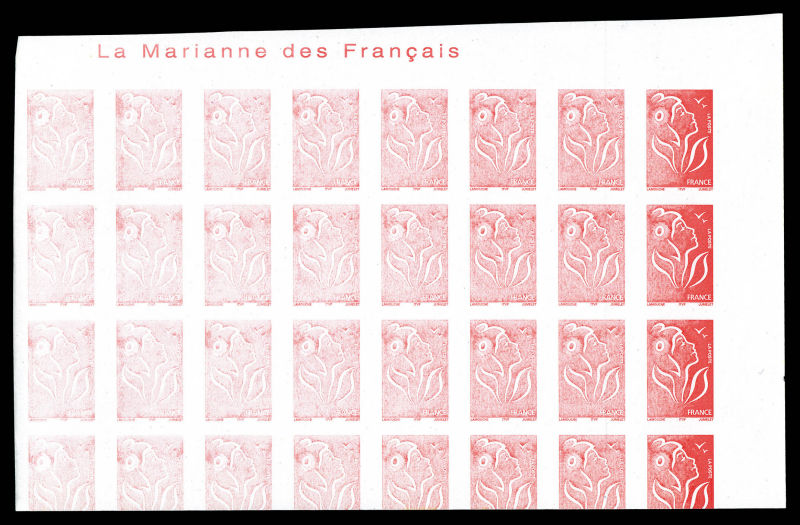 Luquet, vert absent, TIMBRE NON IMPRIME en feuille complète de 100 exemplaires avec numéro et date, probablement unique (ex collection J.P Comtet). SUPERBE. R.R.R. (signé Calves/certificat) Qualité: ** Cote: 15000 euros (Image)