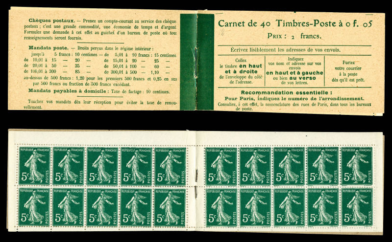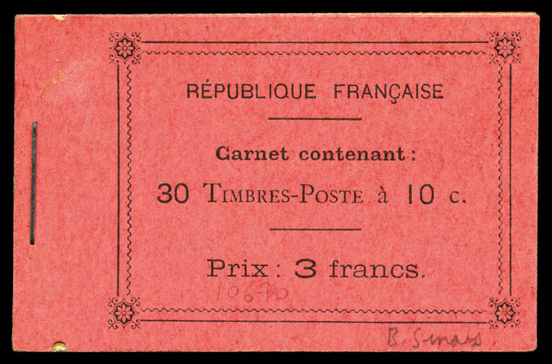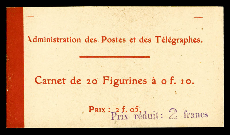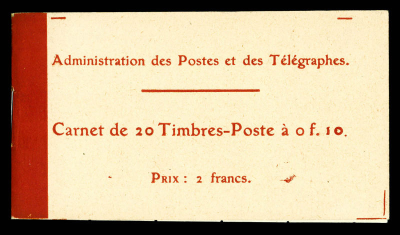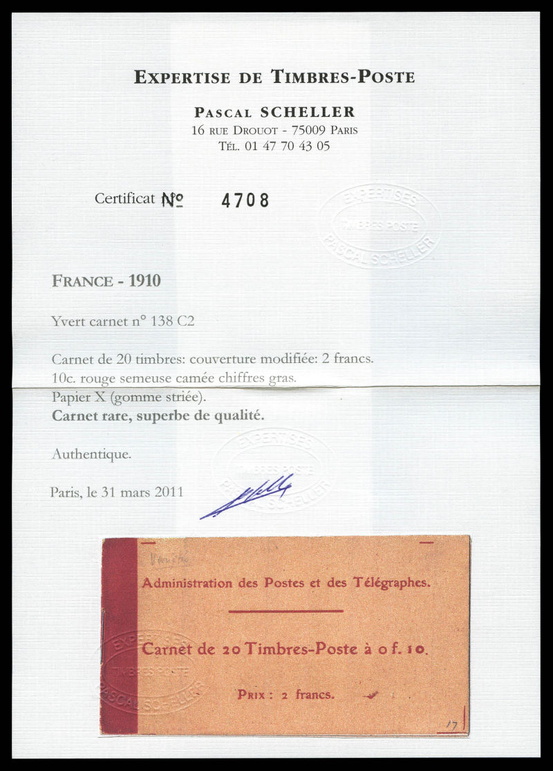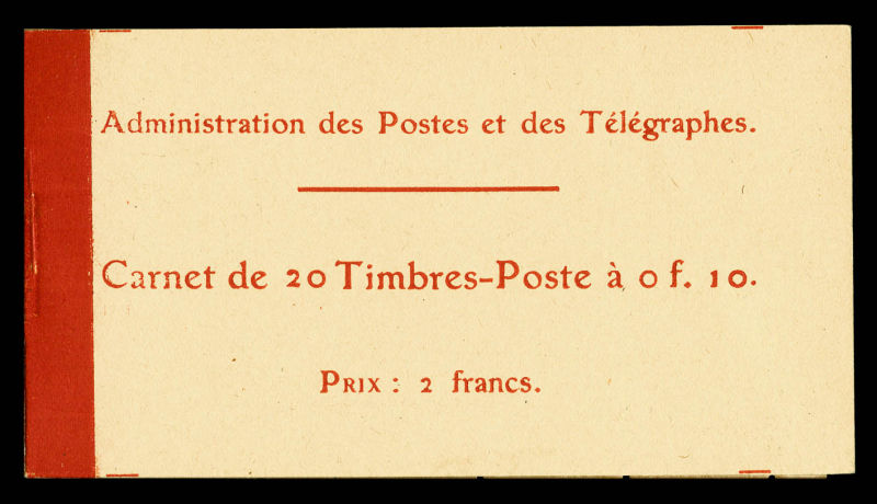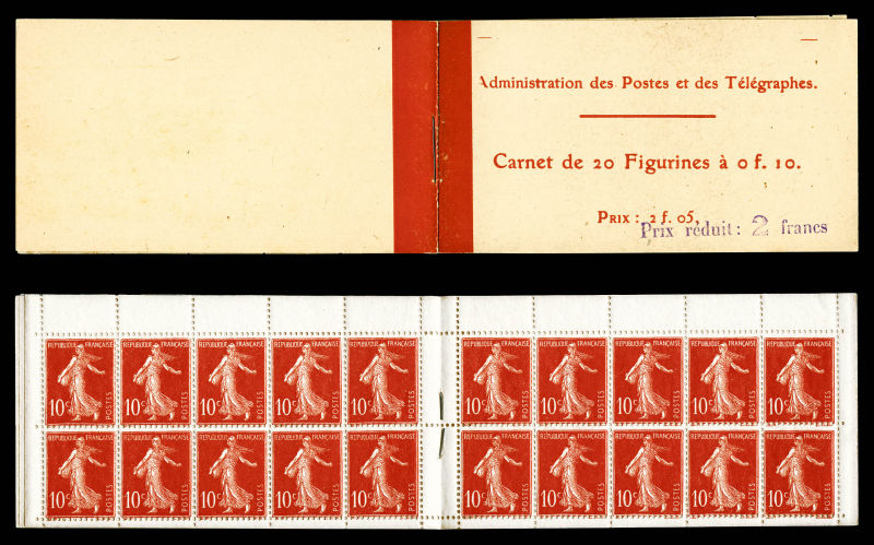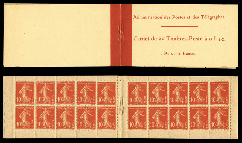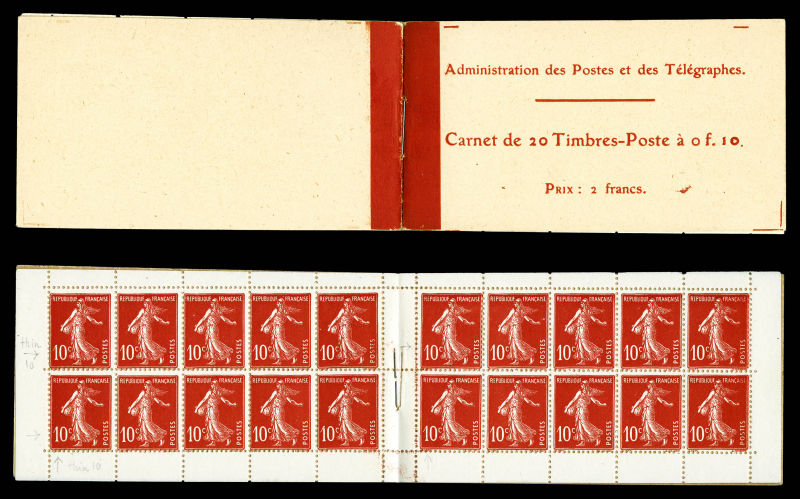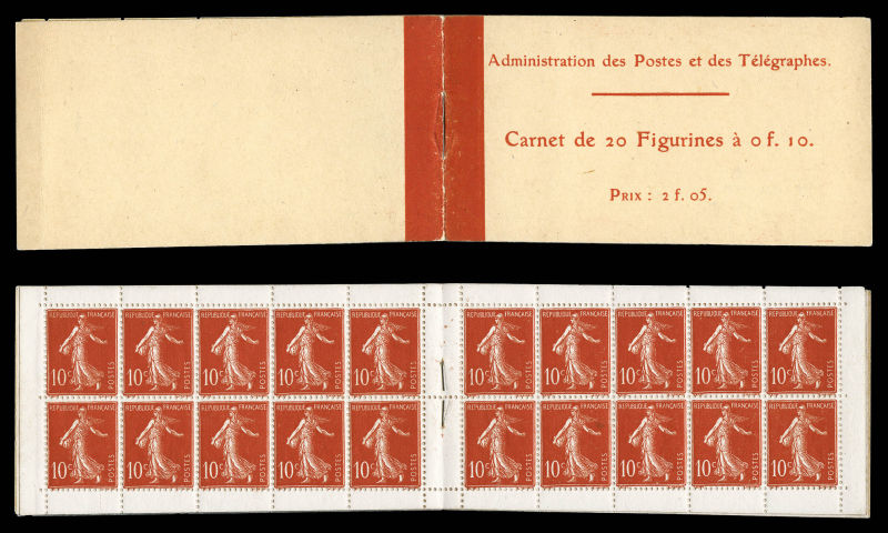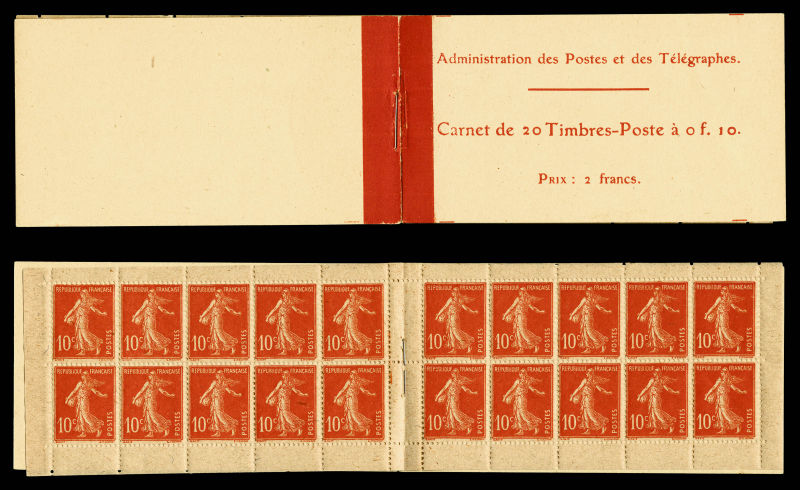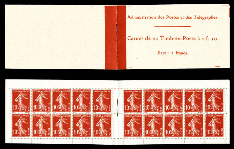 2134 imageN°138-C2, Semeuse camée, 10c rouge chiffres gras, couverture postale 1910: carnet de 20 timbres PAPIER X (gomme striée), GRANDE RARETÉ, SUPERBE (certificat) Qualité: ** Cote: 15700 euros (Image) (image2) (image3) (All Images)