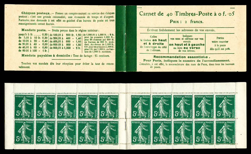 2131 imageN°137-C9, Semeuse, 5c vert, couverture avec en 2ème page: loi du 19 mars 1920 (40 timbres), TTB (certificat) Qualité: ** (Image)