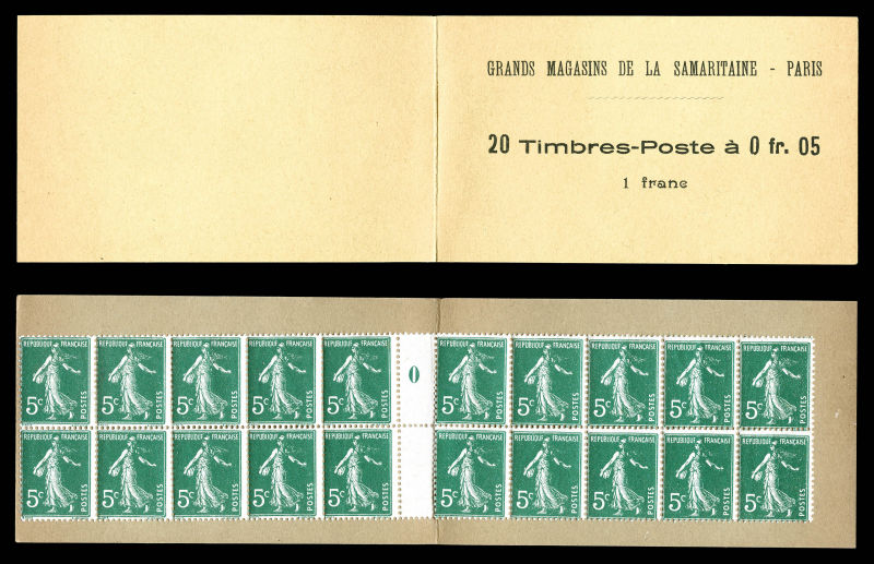2132 imageN°137-CM 13 B, LA SAMARITAINE, couverture beige avec un feuillet de 20 timbres à 0f 05 avec millésime 0. R.R. SUP (certificat) Qualité: ** (Image) (image2) (All Images)