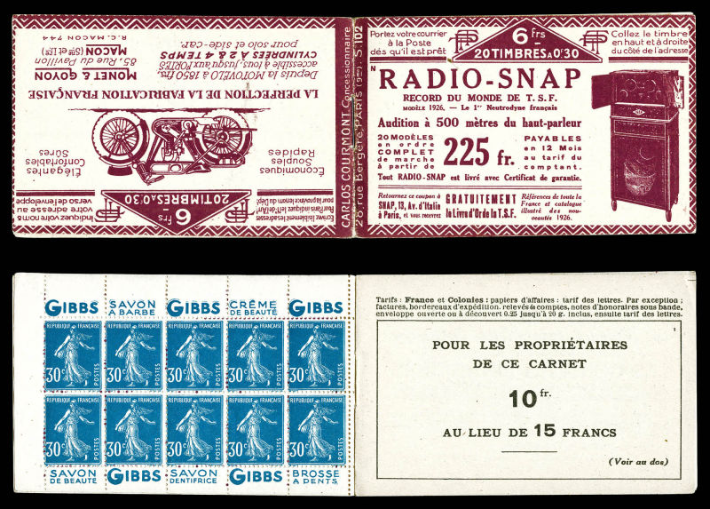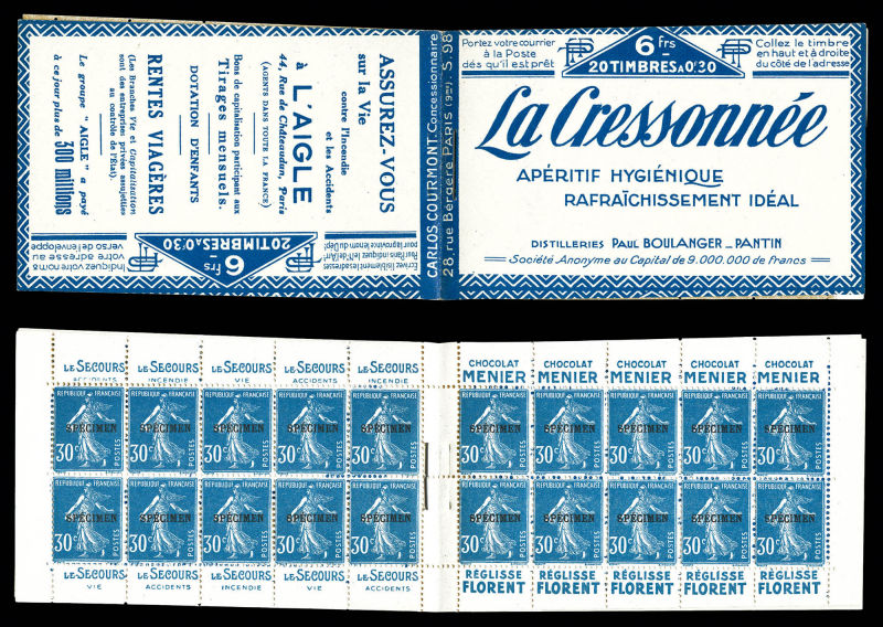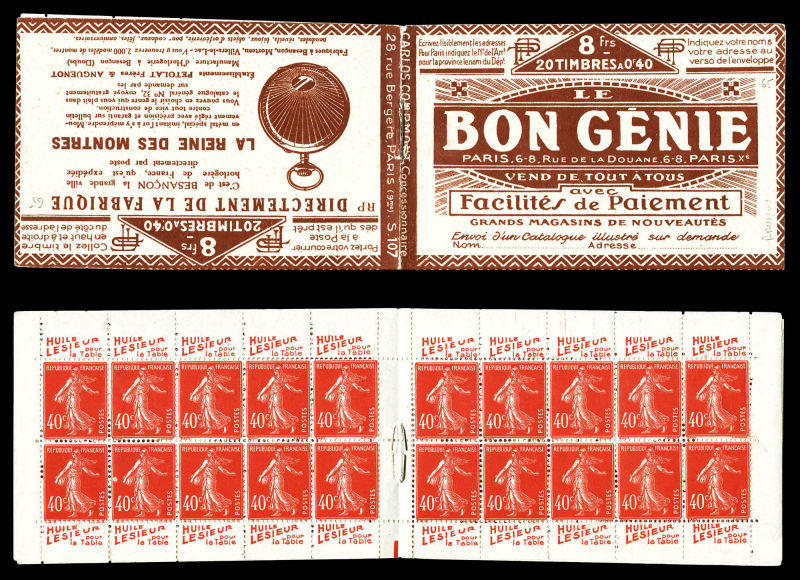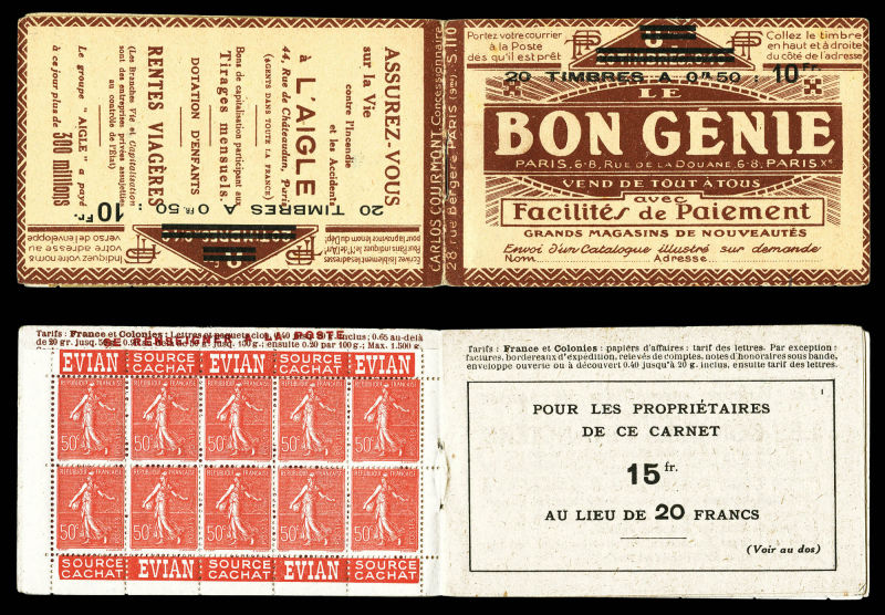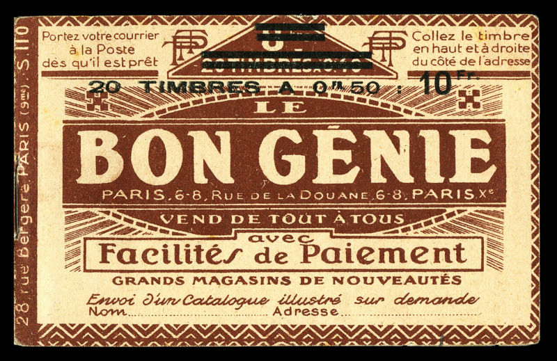 2169 imageN°199-C3, Série 110S, BON GENIE et AIGLE, couverture surchargée en noir, feuillet de gauche marge sup réduite, sans importance pour cette série rarissime. quelques exemplaires connus. SUPERBE. R.R.R. (certificat) Qualité: ** (Image) (image2) (All Images)