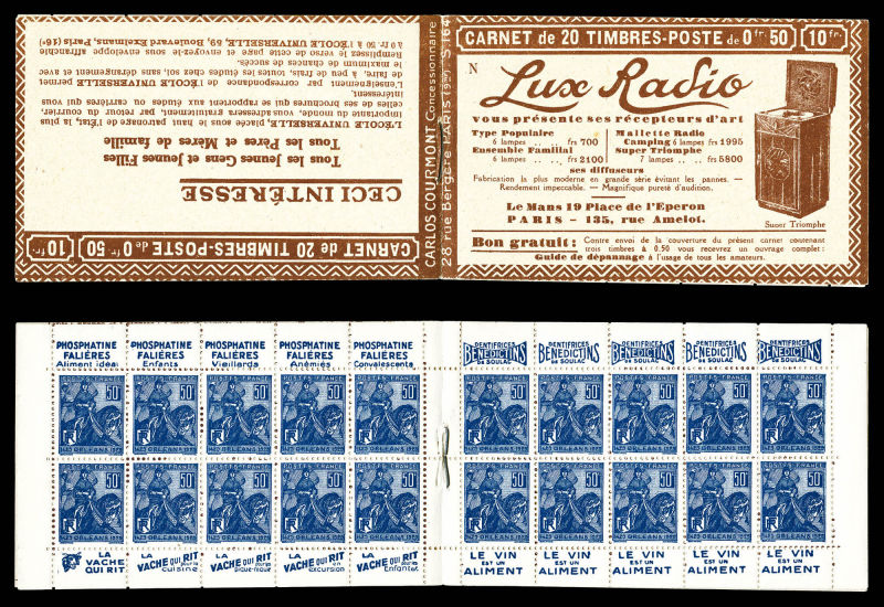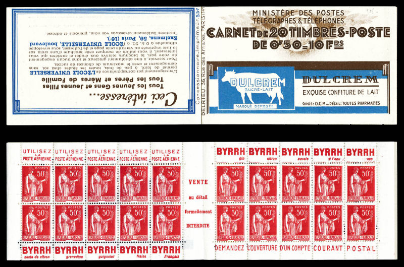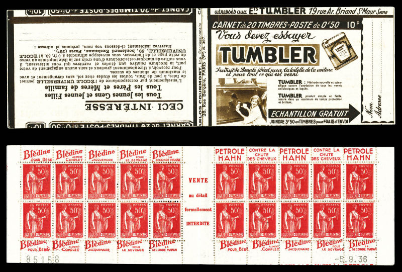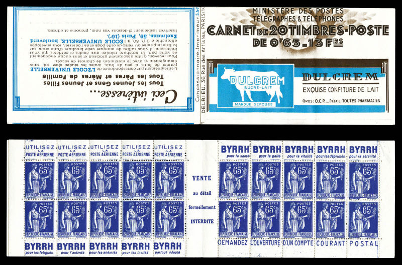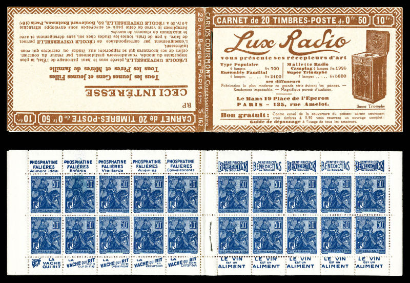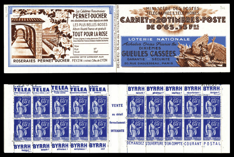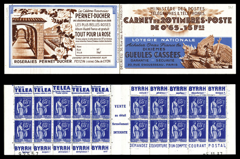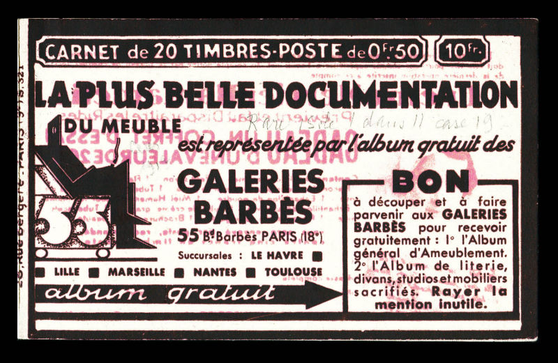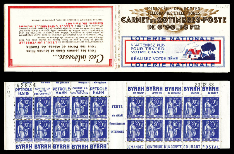 2190 imageN°283-C27, Série 321-A, BARBES et EU, avec 1 timbre isolé au type 1 case 19, décalque sans importance au vue de la rareté de ce carnet. TB. R.R. (certificat) Qualité: ** (Image) (image2) (All Images)
