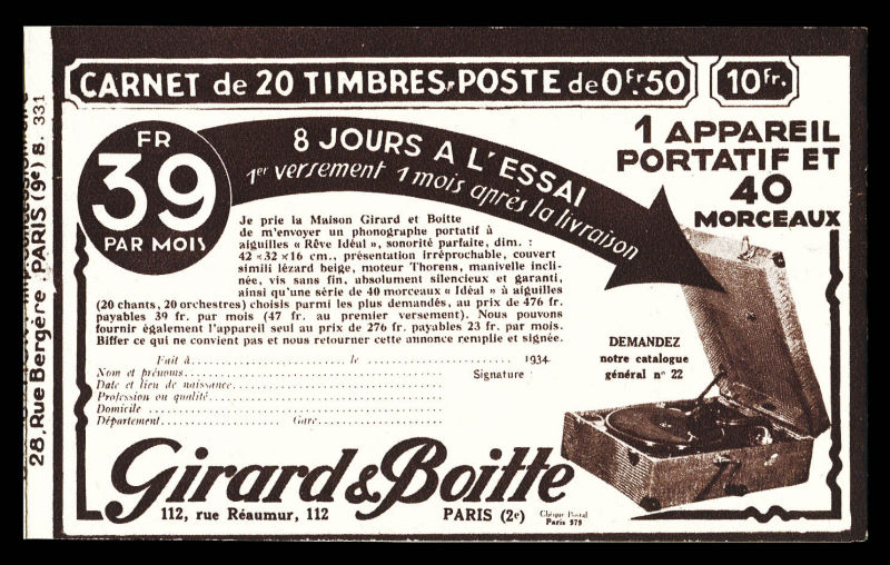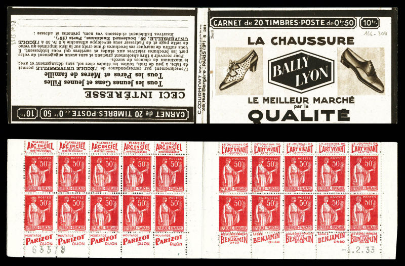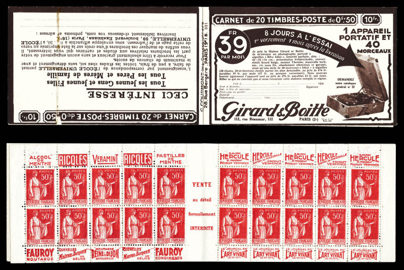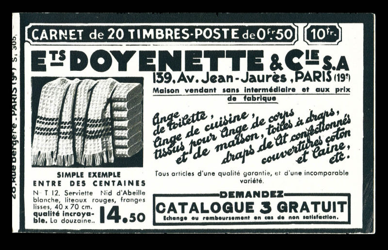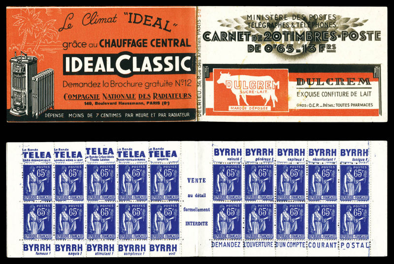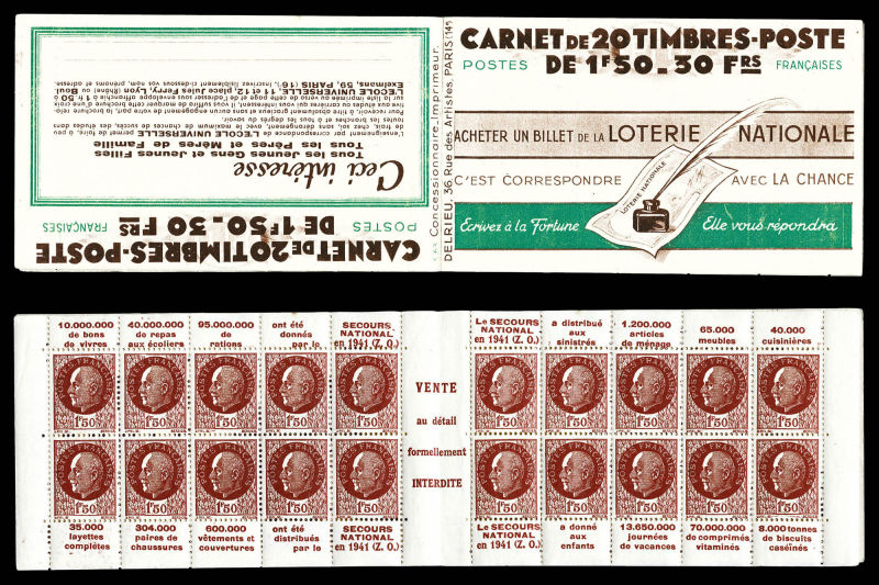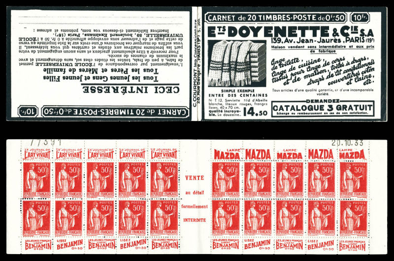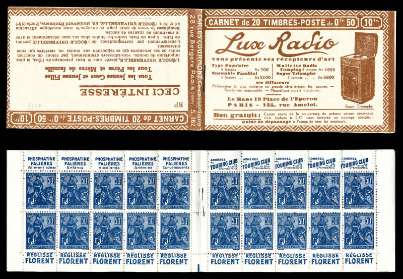 2190 imageN°283-C27, Série 321-A, BARBES et EU, avec 1 timbre isolé au type 1 case 19, décalque sans importance au vue de la rareté de ce carnet. TB. R.R. (certificat) Qualité: ** (Image) (image2) (All Images)