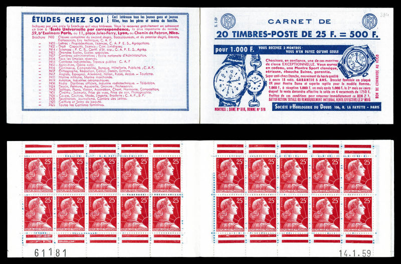 2251 imageN°1011C-C1, Carnet de 8 timbres: 5 exemplaires TB Qualité: ** Cote: 325 euros (Image)