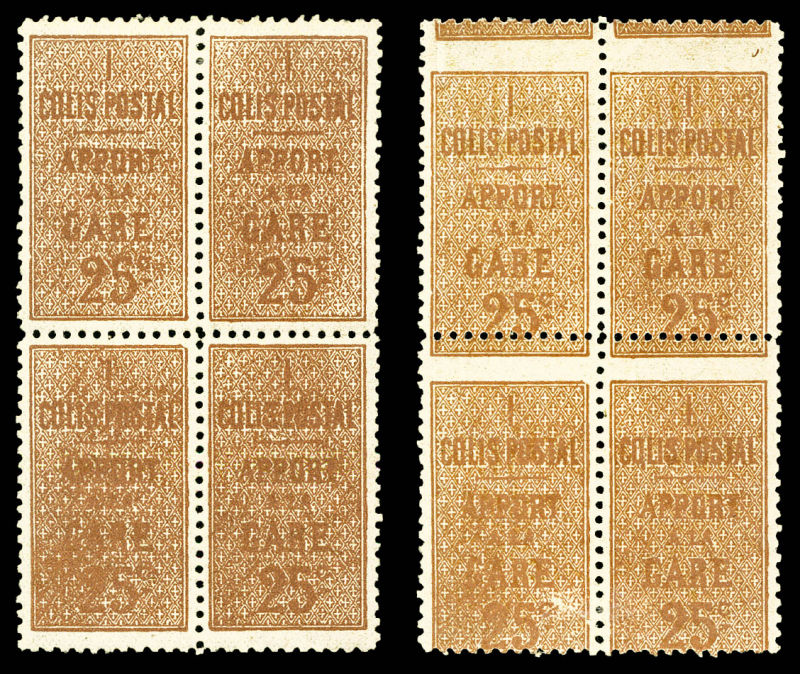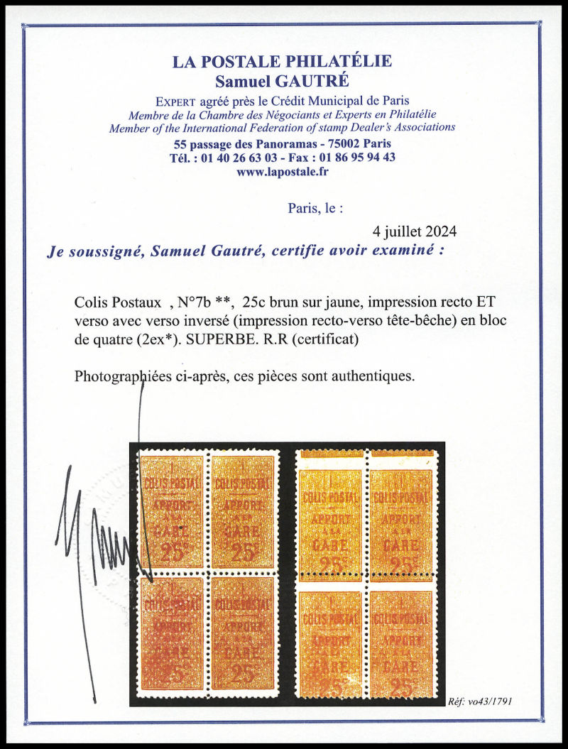 2289 imageN°7b, 25c brun sur jaune, impression recto ET verso avec verso inversé (impression recto-verso tête-bêche) en bloc de quatre (2ex*). SUPERBE. R.R (certificat) Qualité: ** Cote: 2400 euros (Image) (image2) (All Images)