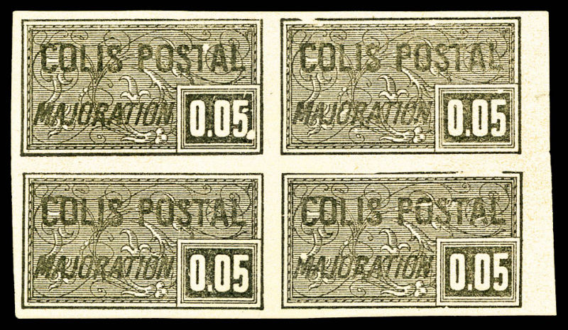 2292 imageN°23, 5c noir Majoration, épreuve sur papier teinté en bloc de 4. SUP (certificat) Qualité: (*) Cote: 1200 euros (Image)