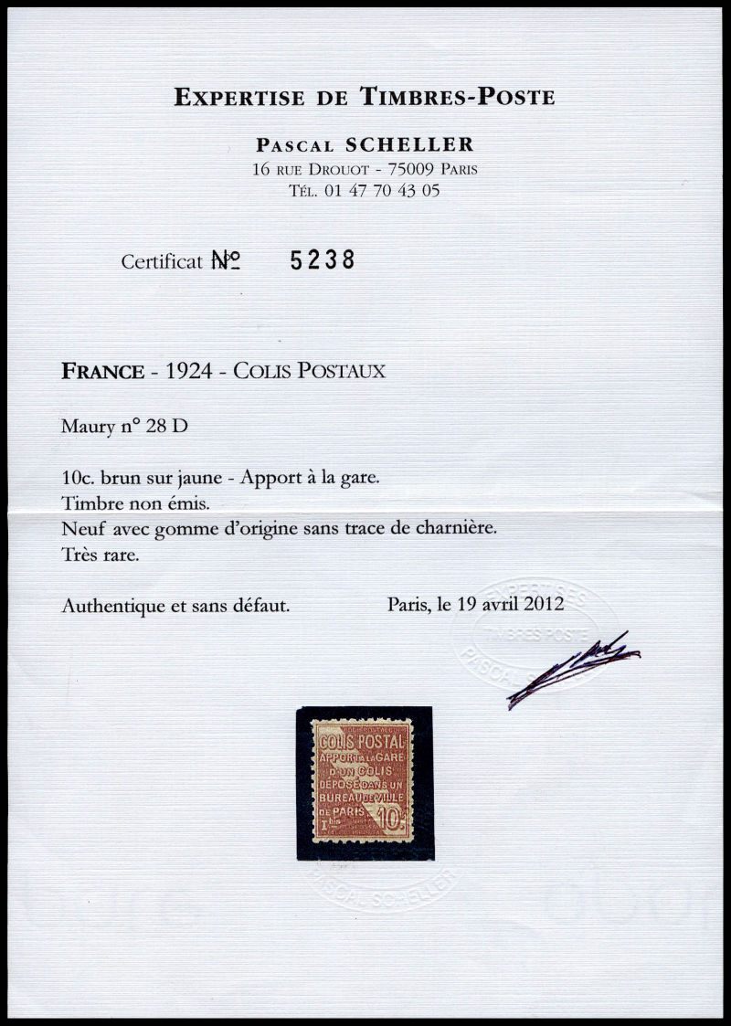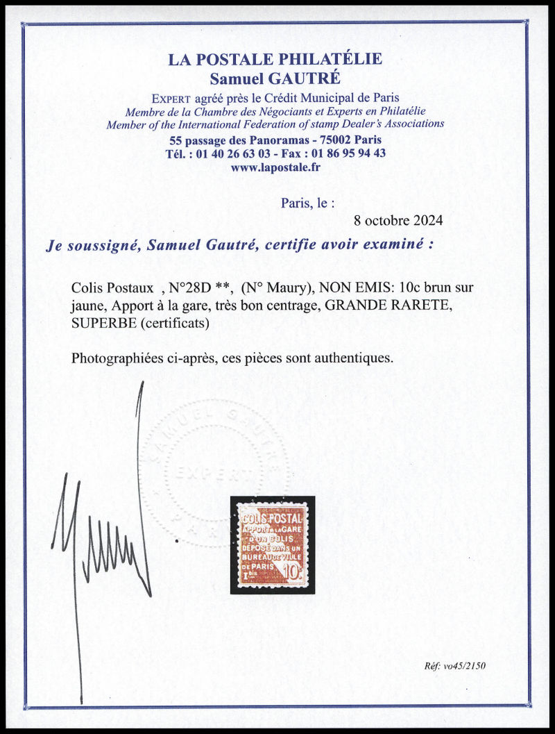 2298 imageN°28D, (N° Maury), NON EMIS: 10c brun sur jaune, Apport à la gare, très bon centrage, GRANDE RARETE, SUPERBE (certificats) Qualité: ** Cote: 11000 euros (Image) (image2) (image3) (All Images)