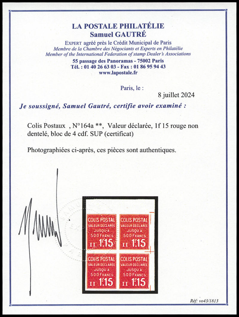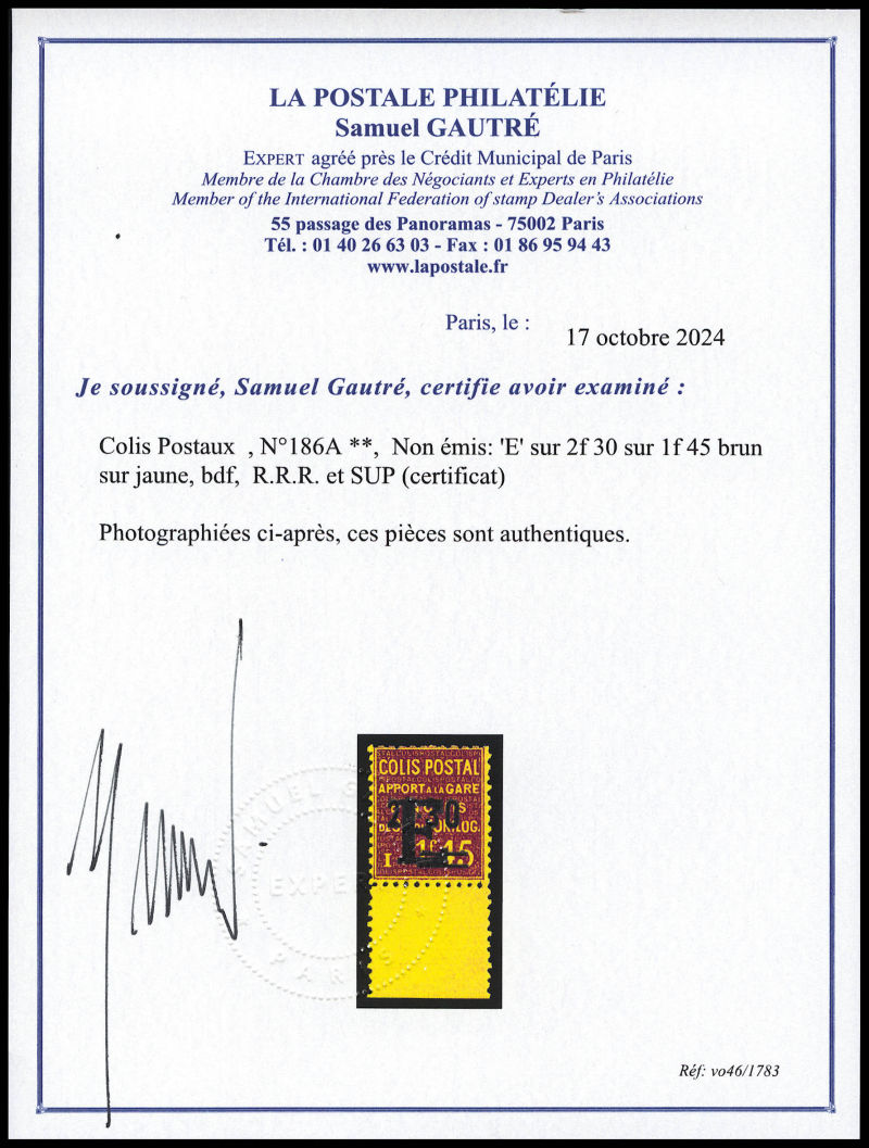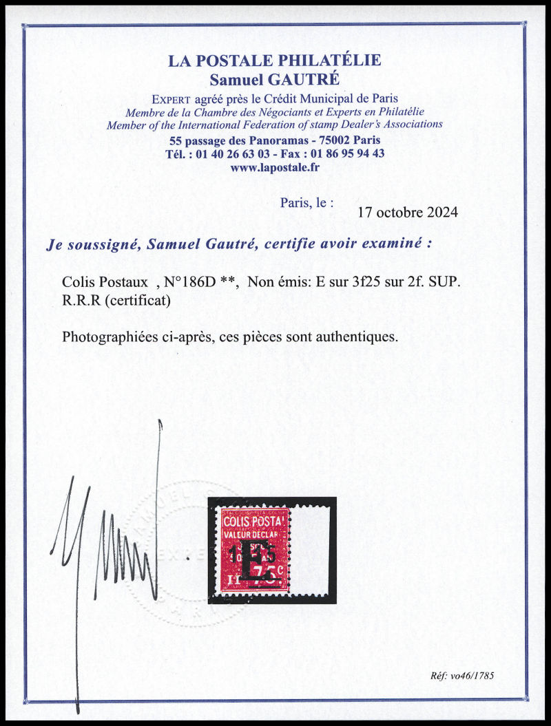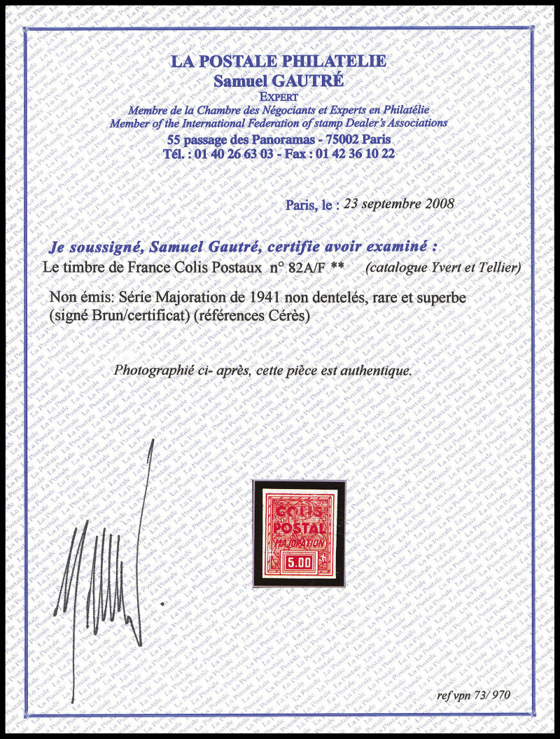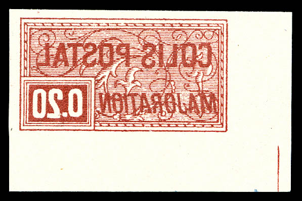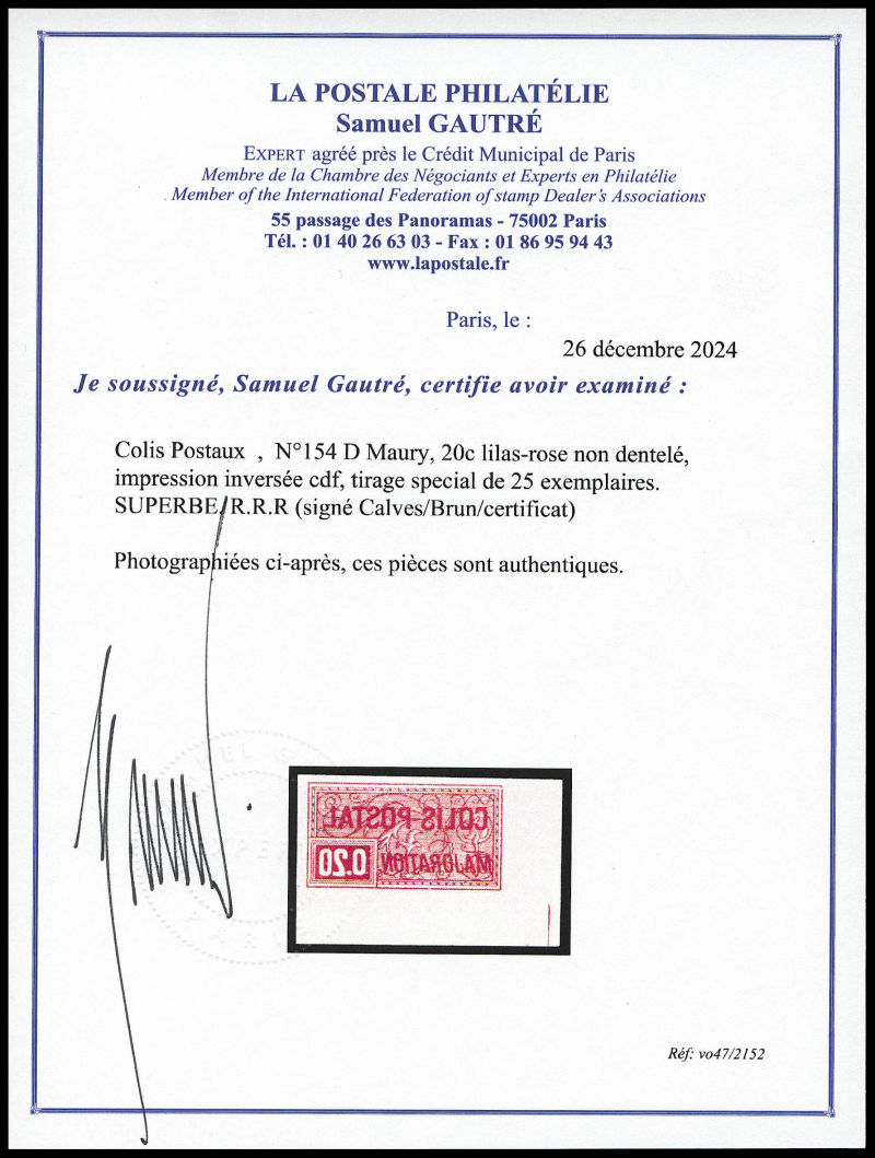 Maury, 20c lilas-rose non dentelé, impression inversée cdf, tirage special de 25 exemplaires. SUPERBE. R.R.R (signé Calves/Brun/certificat) Qualité: ** Cote: 1850 euros