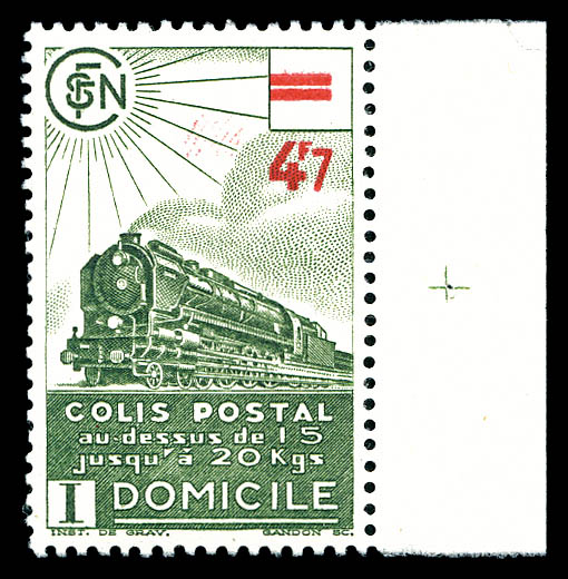 2347 imageN°208c, 3f Locomotive, surcharge doublée de la valeur faciale, bdf. SUP (certificat) Qualité: ** Cote: 800 euros (Image)