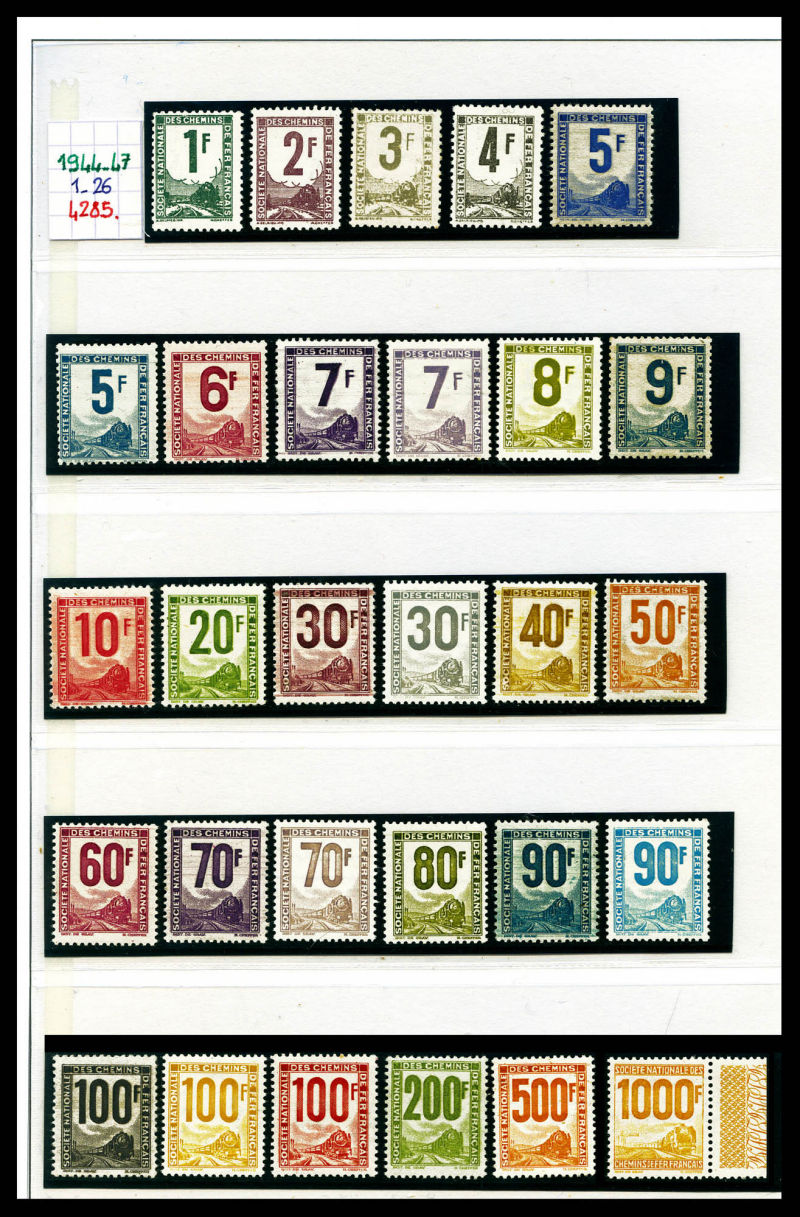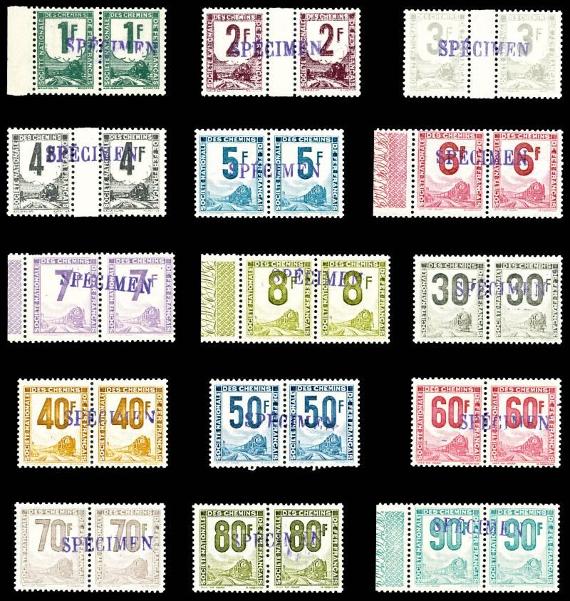 2356 imageLocomotive à vapeur, série de 15 paires surchargées 'SPECIMEN' ENCADREES. SUPERBE. R.R (certificat) Qualité: ** Cote: 642 euros (Image)