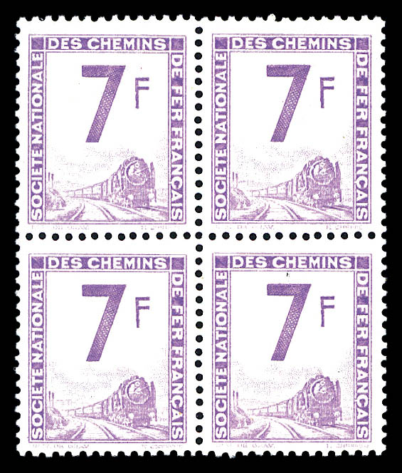 2357 imageN°7, Locomotive, 7f mauve en bloc de 4. SUP (certificat) Qualité: ** Cote: 2000 euros (Image)