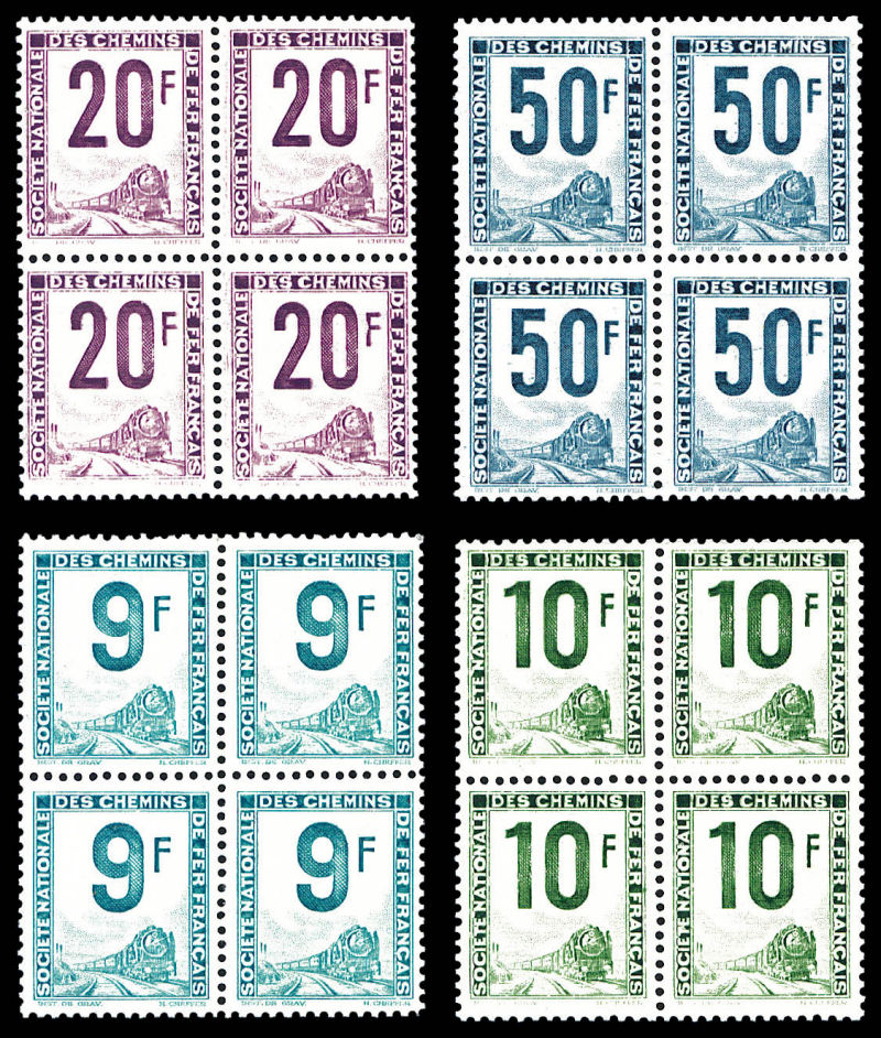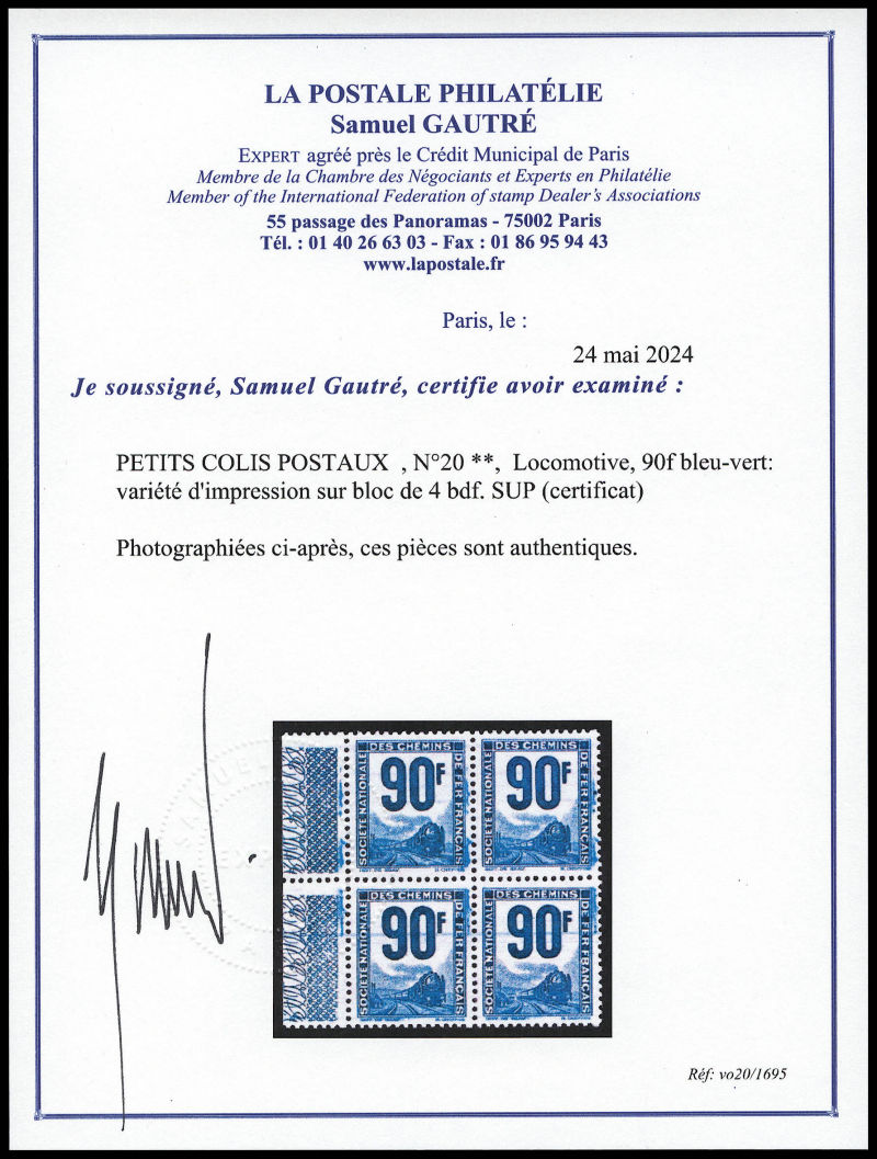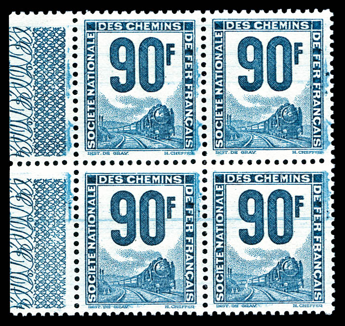 2362 imageN°20, Locomotive, 90f bleu-vert: variété d'impression sur bloc de 4 bdf. SUP (certificat) Qualité: ** Cote: 1600+ euros (Image) (image2) (All Images)