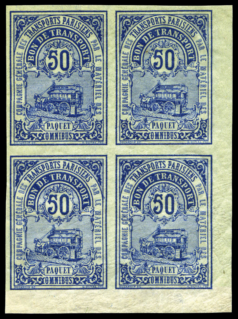2371 imageN°2, (N°Maury), Compagnie des Transports Parisiens, 50c bleu en bloc de quatre cdf, particulièrement rare en multiple. SUP (certificat) Qualité: ** Cote: 4720 euros (Image)