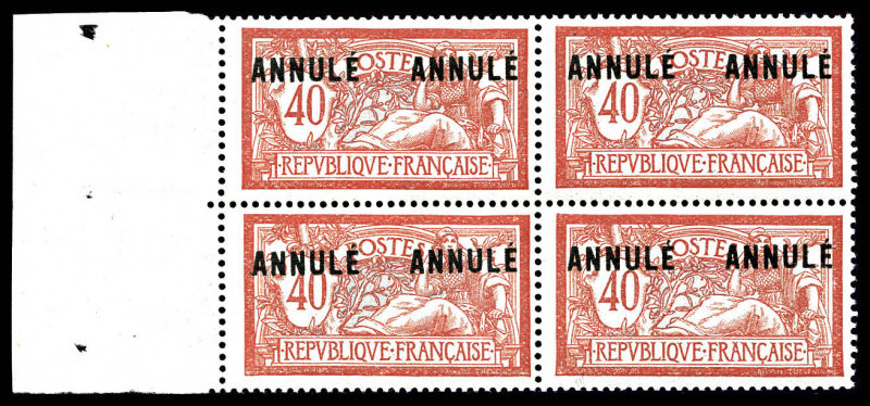 2374 imageN°119-CI 2, Merson 40c en bloc de quatre surchargé 'ANNULE' 2x, SUP (certificat) Qualité: ** Cote: 340 euros (Image)