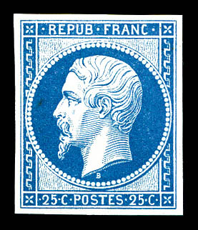 225 imageN°10c, 25c bleu, impression de 1862, FRAÎCHEUR POSTALE, SUP (certificat) Qualité: ** (Image) (image2) (All Images)