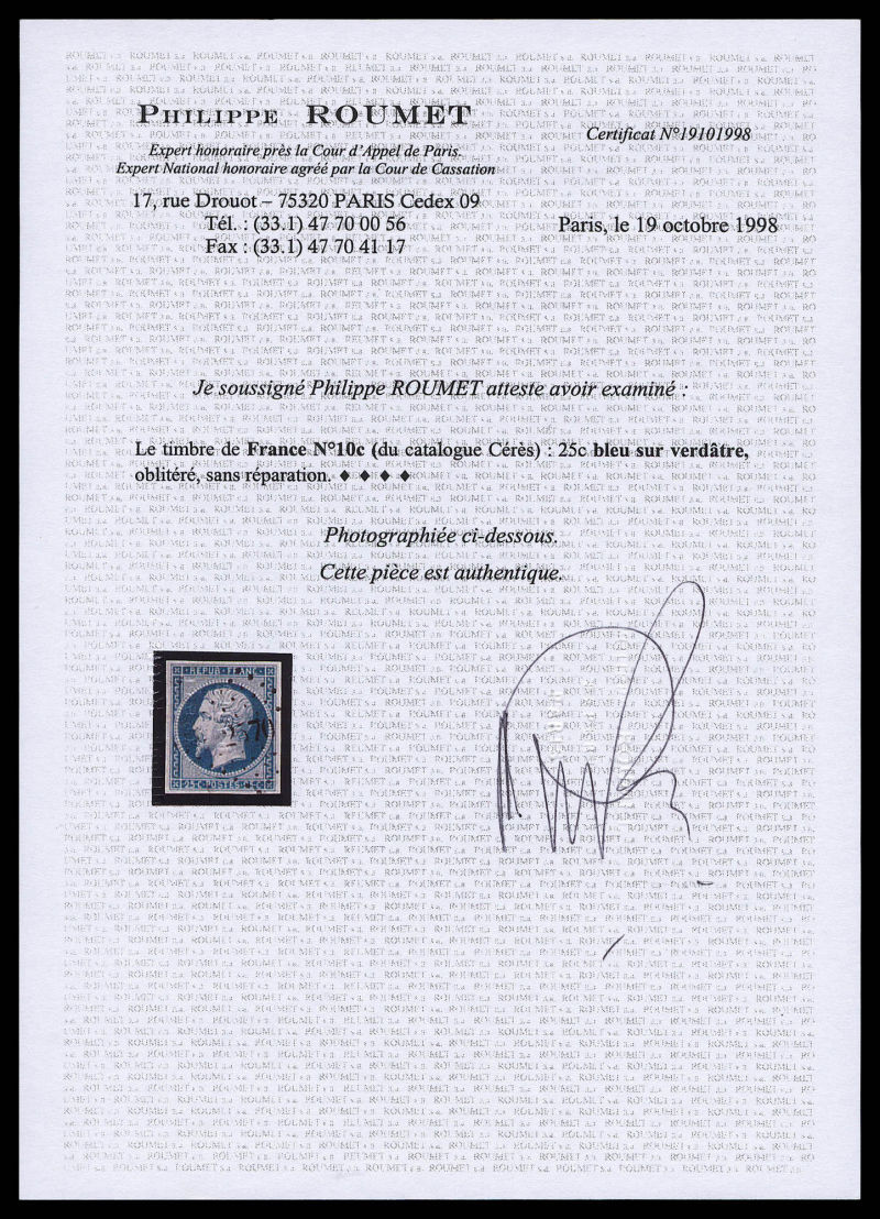 227 imageN°10g, 25c bleu-verdâtre. TB (signé Roumet/certificats) Qualité: Oblitéré (Image) (image2) (All Images)