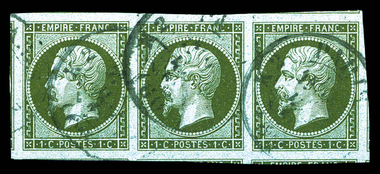 230 imageN°11, 1c olive, bande de 3 avec neuf voisins. PIECE SUPERBE. R. (certificat) Qualité: Oblitéré (Image)