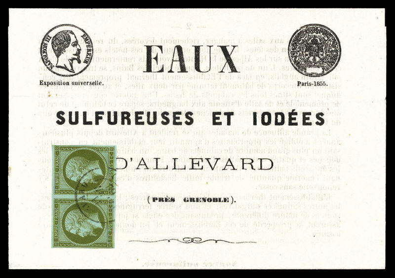 238 imageN°11, 1c olive en paire sur document 'EAUX SUFUREUSE ET IODEES'. TTB (certificat) Qualité: Oblitéré (Image)