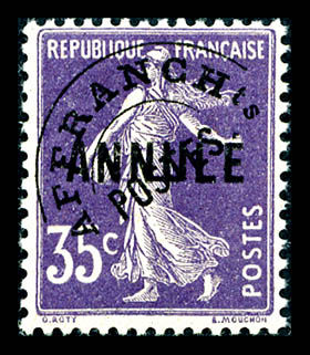 2401 imageN°58-CI 1, 30c Semeuse surchargé 'ANNULE', cdf, bon centrage. SUP Qualité: ** Cote: 450 euros (Image)