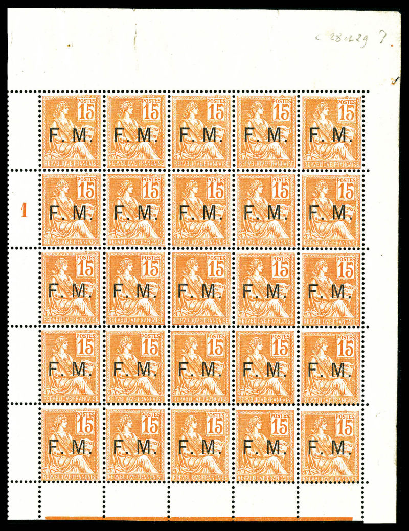 2404 imageN°1, 15c Mouchon surchargé en panneau complet de 25 exemplaires millésime '1'. Fraicheur postale. SUPERBE. R.R (signé/certificat) Qualité: ** Cote: 5875 euros (Image)