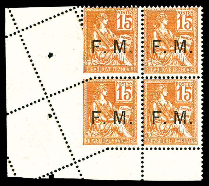 2405 imageN°1, 15c orange, piquage oblique sur bloc de quatre coin de feuille (1ex*). SUPERBE. R. (signé/certificat) Qualité: ** (Image)