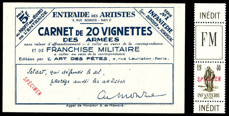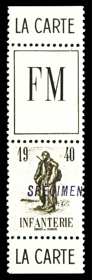 2408 imageN°10A, Non émis: Infanterie, surcharge 'SPECIMEN' en rouge. SUP. R (certificat) Qualité: ** (Image)