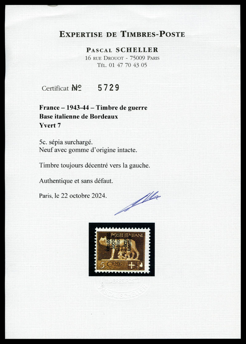 2444 imageN°7, 5c sépia 'Louve', (tirage 200 ex), SUPERBE. R.R.R (signé Brun/Jamet/certificats) Qualité: ** Cote: 9250 euros (Image) (image2) (All Images)