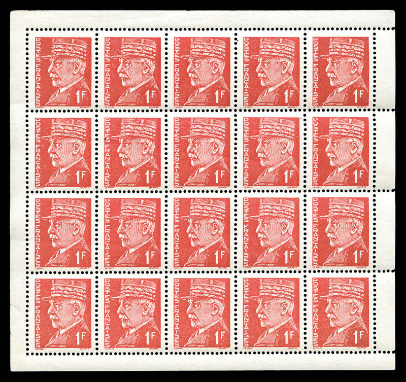 2452 imageN°7, FAUX DE LONDRES, 1F Pétain rouge (N°514), bloc complet de 20 exemplaires. SUP. R. (certificat) Qualité: ** Cote: 660 euros (Image)