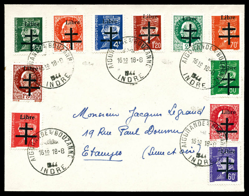 2454 imageN°1/11, AIGURANDE (Indre): série complète obl càd sur lettre, TB (signé Calves/certificat) Qualité: Oblitéré Cote: 1000 euros (Image)