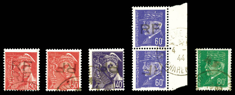 2455 imageANGOULEME: N°2 et 3 surcharges renversées + N °2 double surcharge, N° 5 surcharge renversée tenant à normal et N°7. TB Qualité: Oblitéré Cote: 810 euros (Image)
