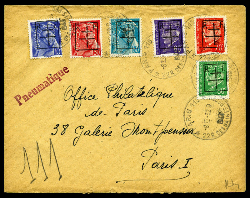 2521 imagePARIS 49: N°8, 9, 11, 12, 13 et 14 sur lettre pneumatique. SUP. R. (certificat) Qualité: Oblitéré Cote: 540 euros (Image) (image2) (All Images)