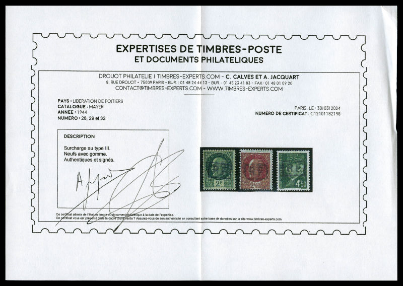 2528 imageN°39/50, POITIERS: Série complète type IV dont 50F noir variété quadruple impression de la surcharge, SUPERBE. R. (signé Calves/certificats) Qualité: ** Cote: 2377+ euros (Image) (image2) (All Images)