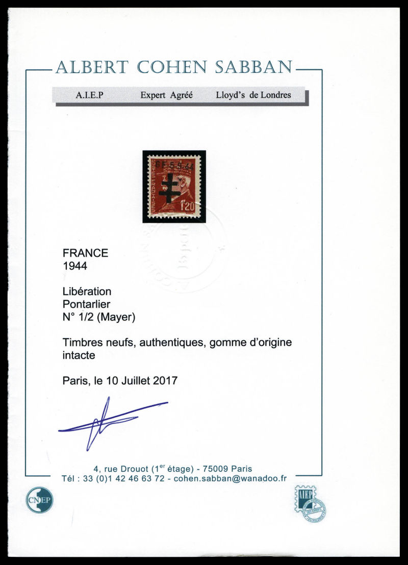 2532 imageN°1/2, PONTARLIER (Doubs): 1F20 et 1F50 brun rouge bdf, SUP (certificats) Qualité: ** Cote: 600 euros (Image) (image2) (All Images)